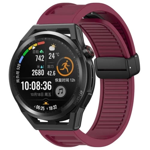 Correa de Silicona para Huawei Watch GT Runner con Hebilla Magnética Plegable 22mm (Rojo Vino)