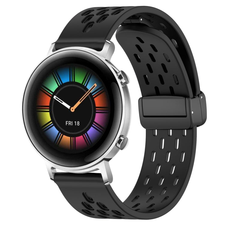 Correa de Reloj de Silicona para Huawei Watch GT2 42mm 20mm con Cierre Magnético Plegable (Negro)