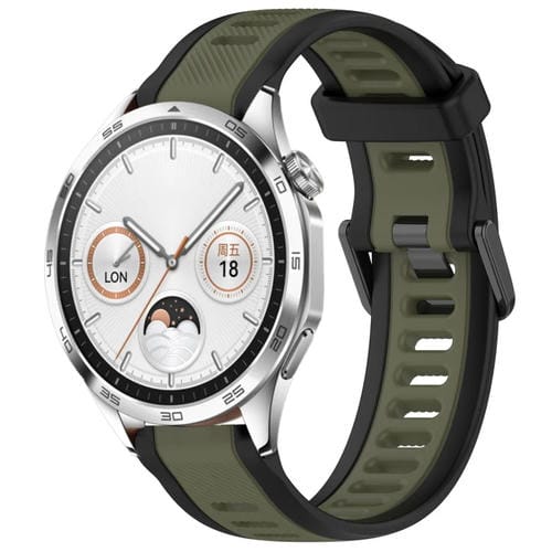 Correa de Silicona para Huawei Watch GT4 46mm 22mm Texturizada Dos Colores (Verde + Negro)
