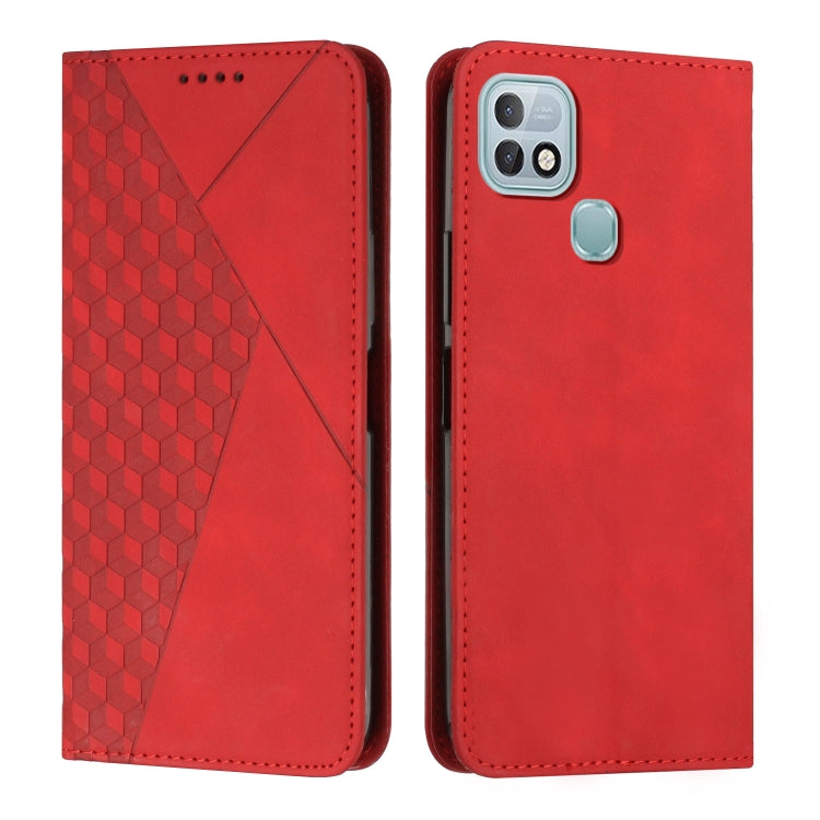 Funda para Infinix Hot 10I Diamond Splicing caja de teléfono cuero magnético (Rojo)