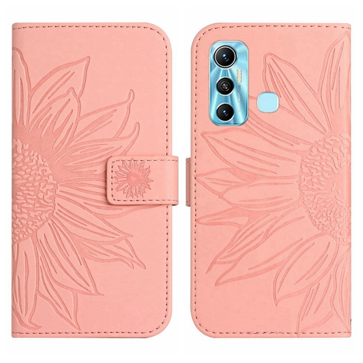 Funda de Cuero Flip para Infinix Hot 11 con Cordón y Estampado Sun Flower (Rosa)