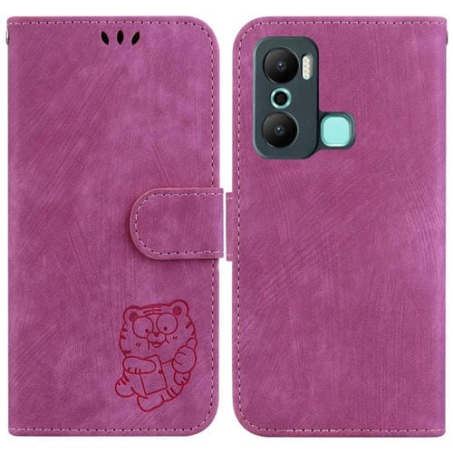Funda de Cuero para Infinix Hot 12 Play Little Tiger en Relieve (Rojo Rosa)