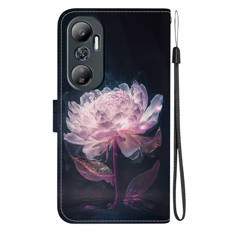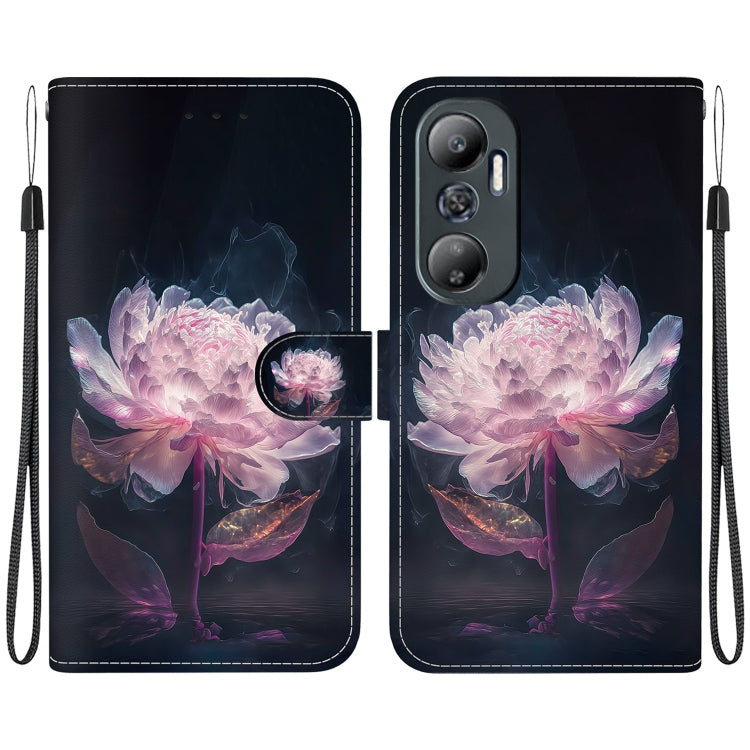 Estuche de Cuero para Infinix Hot 20 con Dibujo Coloreado y Textura de Cristal (Peonía Púrpura)