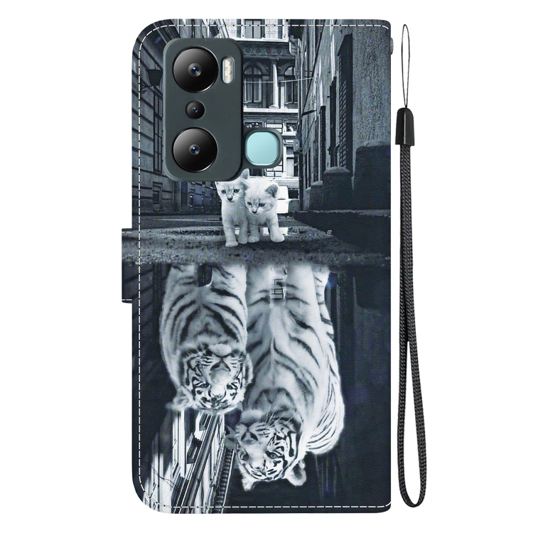 Funda de Cuero para Infinix Hot 20I con Dibujo Coloreado y Textura de Cristal (Reflejo de Tigre Gato)