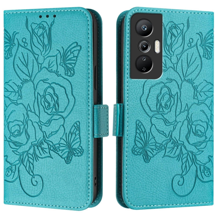 Estuche de Cuero Antirrobo RFID para Infinix Hot 20S y 20 Pro con Rosa en Relieve (Azul Claro)