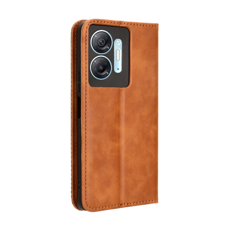 Funda para Infinix Hot 30 5G X6832 de Cuero con Textura Retro y Hebilla Magnética (Marrón)