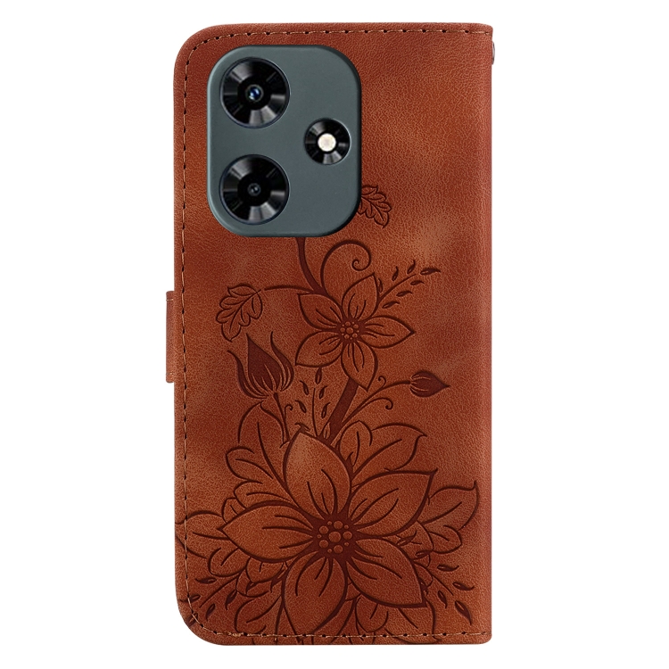 Funda de Cuero En Relieve para Infinix Hot 30 Lily (Marrón)