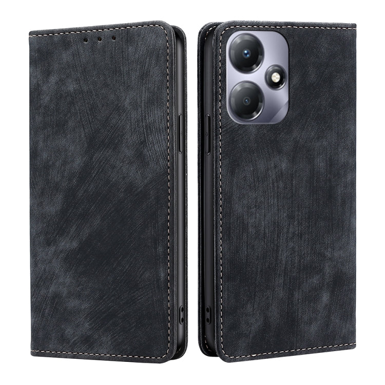 Funda para Infinix Hot 30 Play 4G Cuero Magnética con Rfid y Cepillo Antirrobo (Negro)