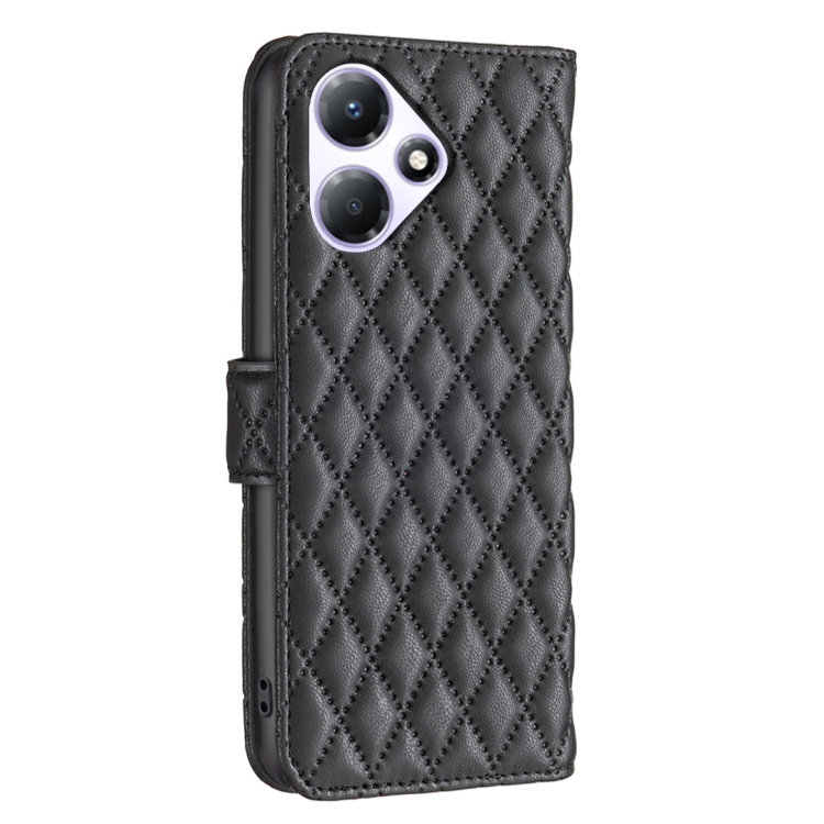 Funda de Cuero para Infinix Hot 30 Play NFC con Tapa y Diseño Diamond Lattice (Negro)