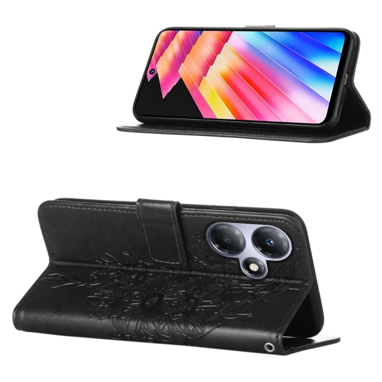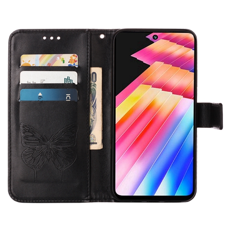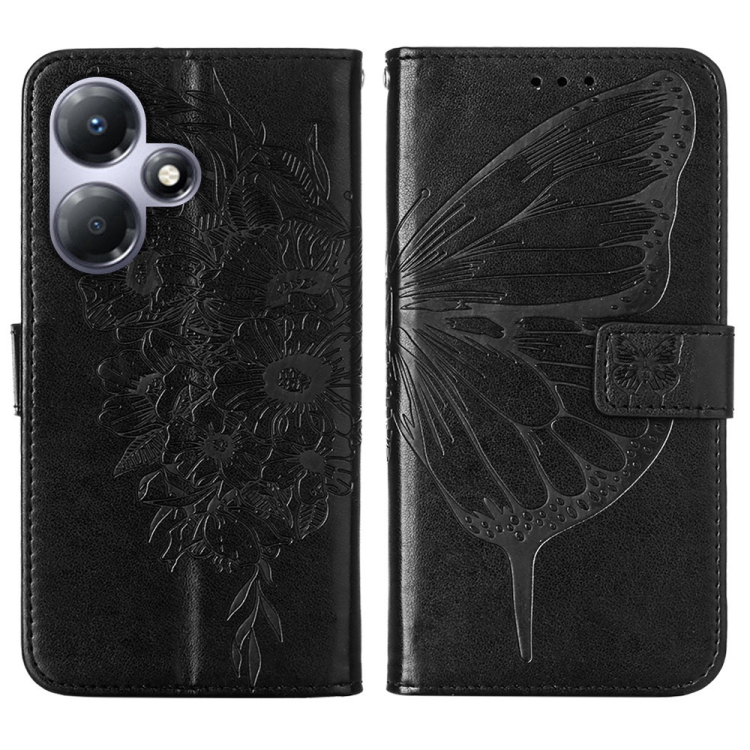 Estuche para Teléfono Infinix Hot 30 Play X6835 Cuero con Mariposa en Relieve (Negro)