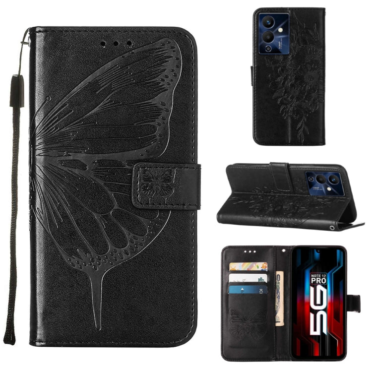 Estuche para Infinix Note 12 Pro 5G de Cuero con Tapa de Mariposa en Relieve (Negro)