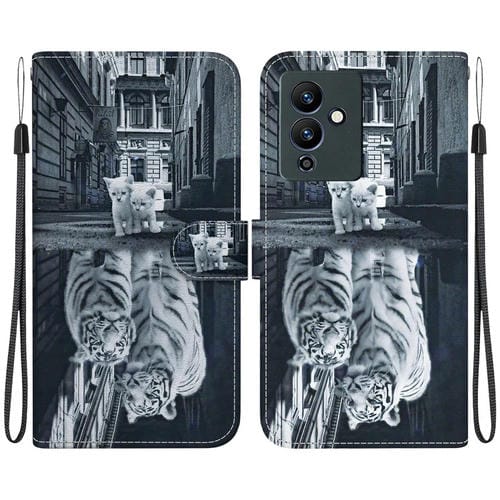 Funda de Cuero para Infinix Note 12 Pro 5G con Dibujo Coloreado y Textura de Cristal (Reflejo de Tigre Gato)