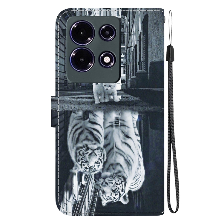 Funda de Cuero para Infinix Note 30 con Dibujo Coloreado y Textura de Cristal (Reflejo de Tigre Gato)