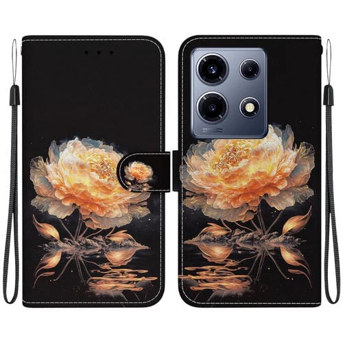 Funda de Cuero para Infinix Note 30 Vip con Dibujo Coloreado y Textura Crystal (Peonía Dorada)