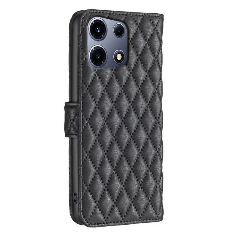 Funda de Cuero para Infinix Note 30 Vip con Tapa y Diseño Diamond Lattice (Negro)