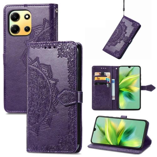 Funda para Teléfono Infinix Note 30I Cuero con Estampado de Flores Mandala (Púrpura)