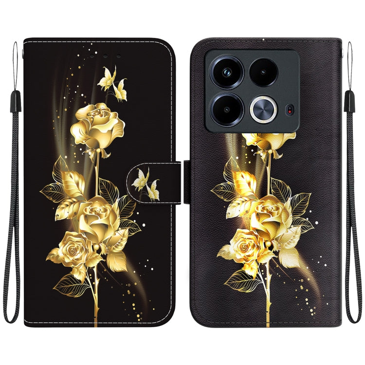 Funda para Infinix Note 40 4G de Cuero con Dibujo Coloreado y Textura de Cristal (Mariposa Dorada Rosa)