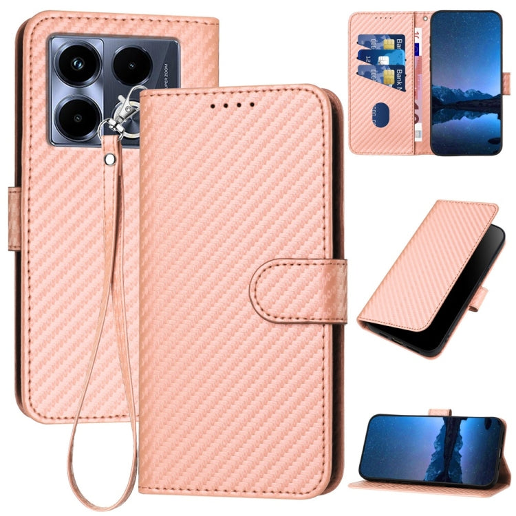 Funda de Cuero para Infinix Note 40 4G Yx0070 con Hebilla de Fibra de Carbono y Cordón (Rosa)