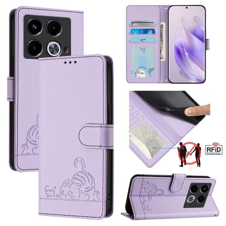 Estuche para Infinix Note 40 5G de Cuero Rfid con Patrón en Relieve y Cordón (Púrpura)