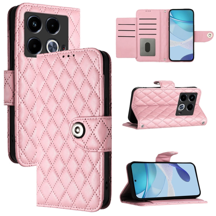 Funda para Infinix Note 40 5G de Cuero con Tapa Textura Romboidal y Cordón (Rosa)
