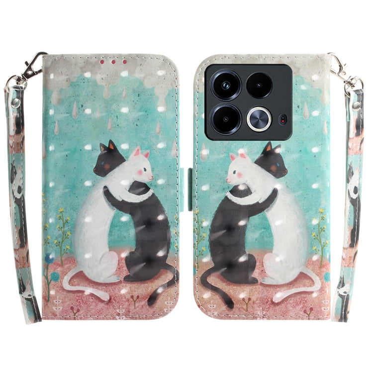 Funda de Cuero con Tapa Horizontal para Infinix Note 40 (Gato Blanco Negro) 3D