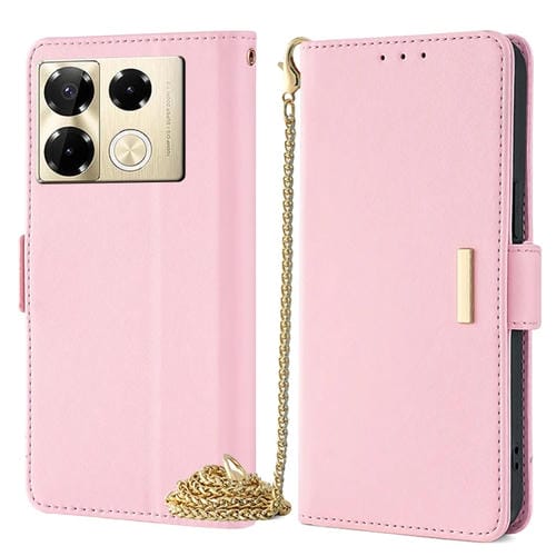 Funda de Cuero para Infinix Note 40 Pro 4G con Cadena Cruzada (Rosa)