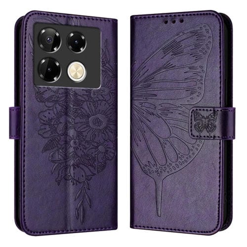 Funda de Cuero para Infinix Note 40 Pro 5G con Mariposa en Relieve (Púrpura Oscuro)