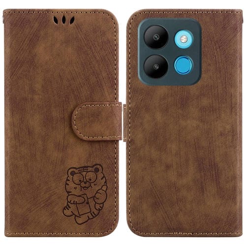 Funda para Teléfono Infinix Smart 7 African 6515 Cuero con Relieve Little Tiger (Marrón)