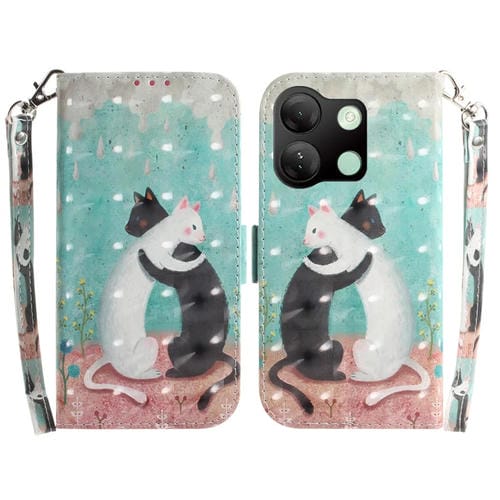 Funda de Cuero para Infinix Smart 7 HD con Tapa Horizontal y Diseño 3D (Gato Blanco y Negro)