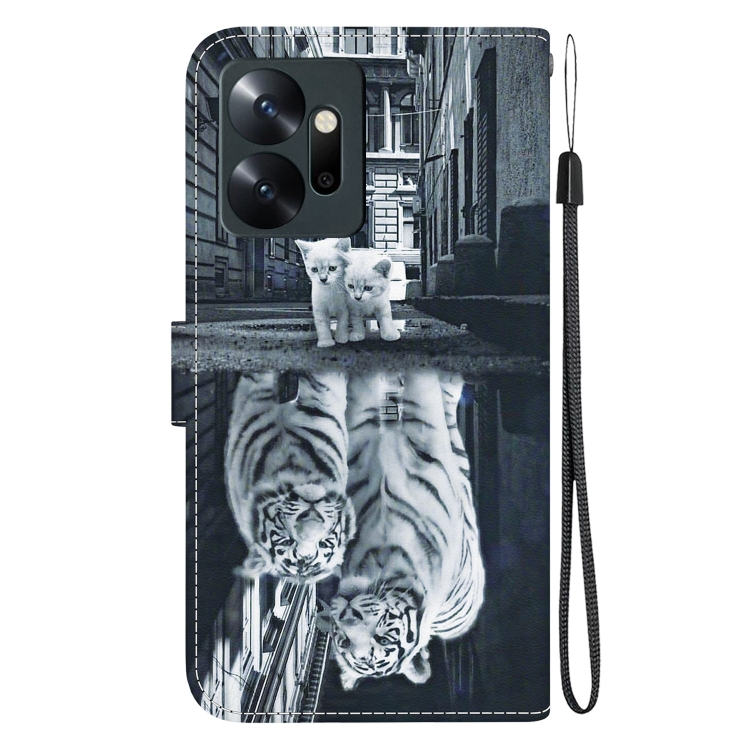 Funda para Infinix Zero 20 X6821 de Cuero con Dibujo Coloreado y Textura de Cristal (Reflejo de Tigre Gato)