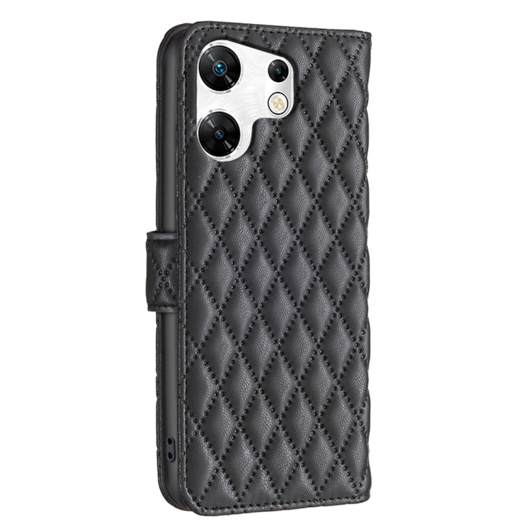 Funda de Cuero para Infinix Zero 30 4G con Tapa y Diseño Diamond Lattice (Negro)
