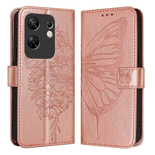 Funda de Cuero para Infinix Zero 30 4G con Mariposa en Relieve (Oro Rosa)