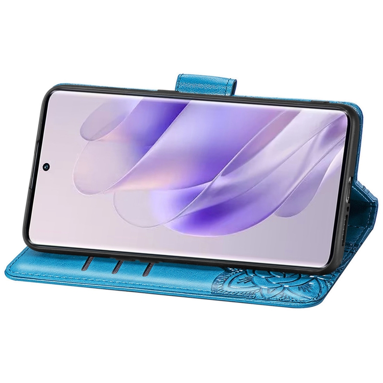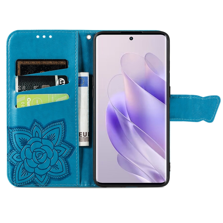 Funda para Teléfono Infinix Zero 30 4G Cuero Relieve Flor de Amor y Mariposa (Azul)