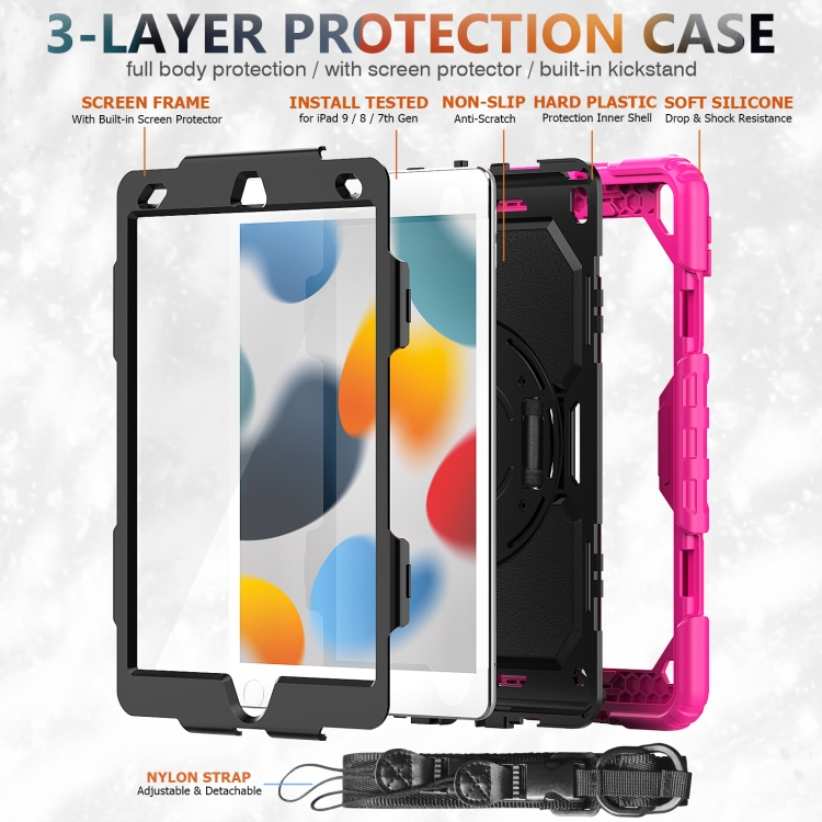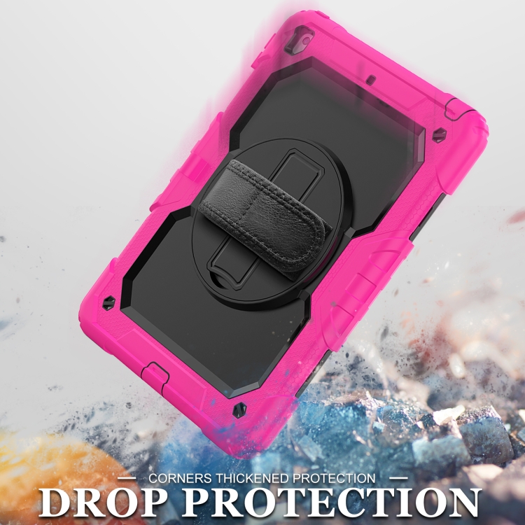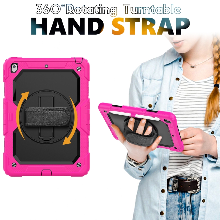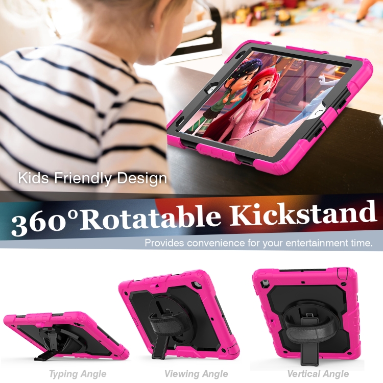 Funda Protectora para iPad 10.2 2021/2020/2019 Silicona a Prueba de Golpes + PC con Soporte Correa y Ranura para Bolígrafo (Rosa Roja)