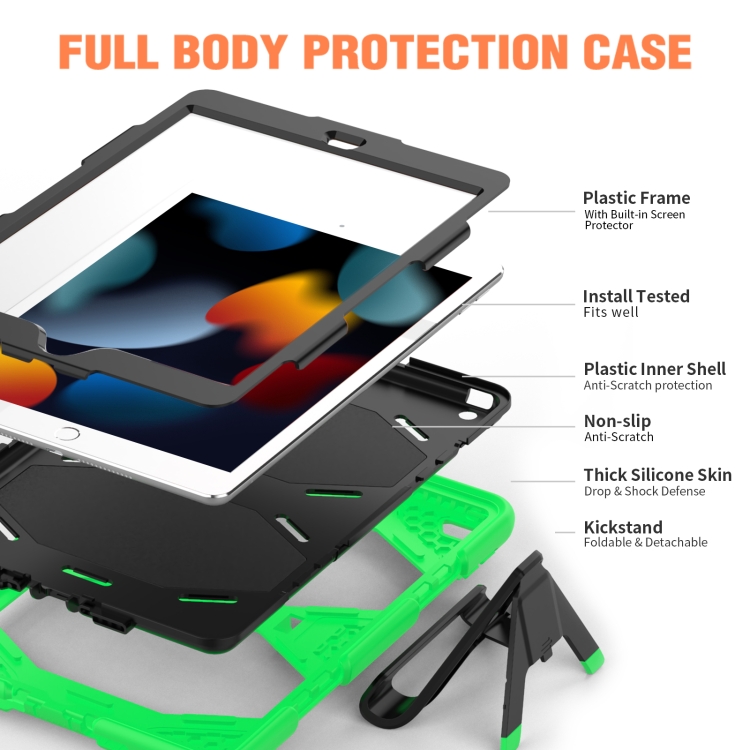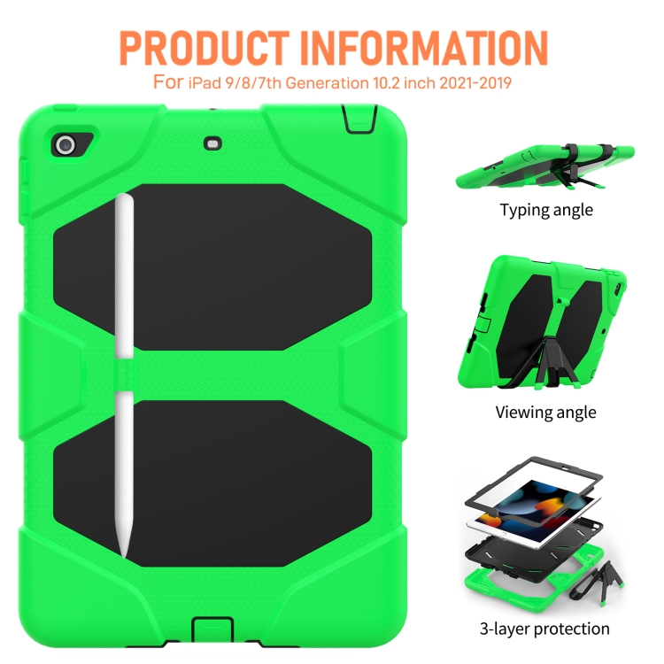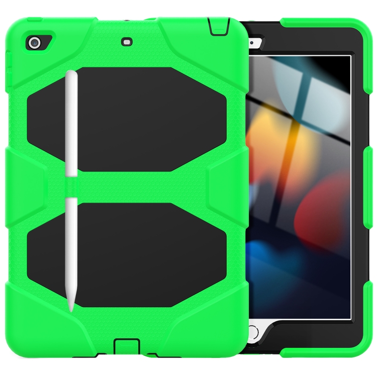 Funda Protectora Silicona + PC para iPad 10.2 2021/2020/2019 con Soporte y Ranura para Bolígrafo (Verde)
