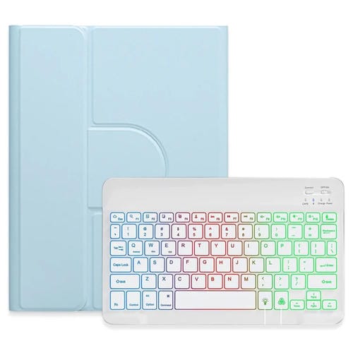 Funda de Cuero con Teclado Bluetooth para iPad 10.2 2021 y Air 2019 Retroiluminación Tres Colores Giratorio 360 (Azul Cielo)