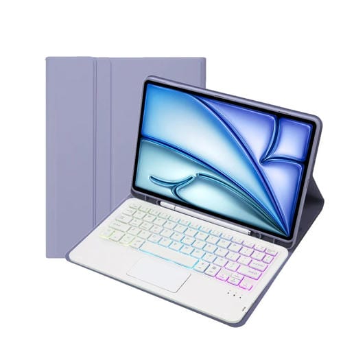 Funda de Cuero para iPad Air 11 2024 y Air 5 10.9 A098B-As con Teclado Bluetooth Retroiluminado Desmontable y Ranura para Bolígrafo (Púrpura)