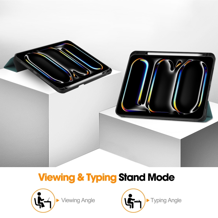 Funda de Cuero Inteligente Custer TPU con Tres Pliegues y Bandeja para Bolígrafo para iPad Pro 11 (2024) (Verde Oscuro)