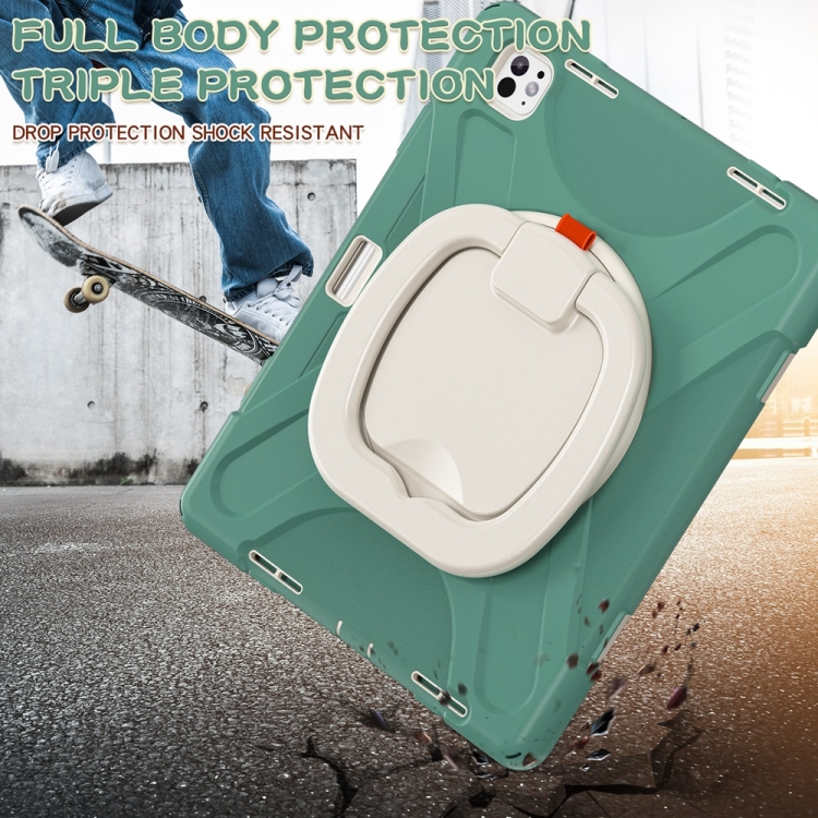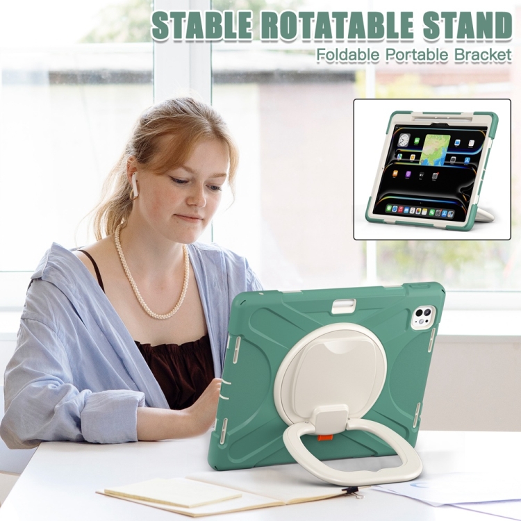 Funda Híbrida de Silicona para iPad Pro 11 (2024) con Soporte y Correa (Verde Esmeralda)