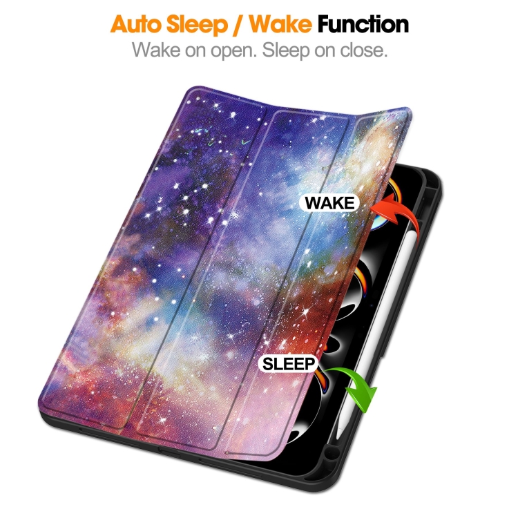 Funda de Cuero Inteligente para iPad Pro 11 (2024) con Tres Pliegues y Bandeja para Bolígrafos (Nebulosa de la Vía Láctea)