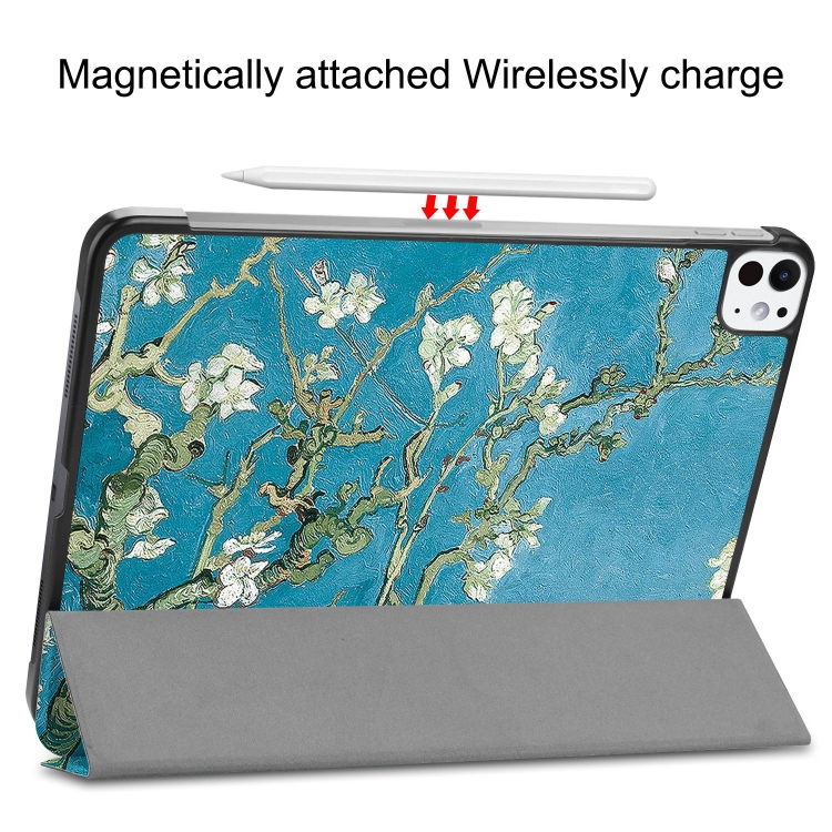 Funda de Cuero Inteligente para iPad Pro 11 (2024) con Tres Pliegues (Flor de Albaricoque)
