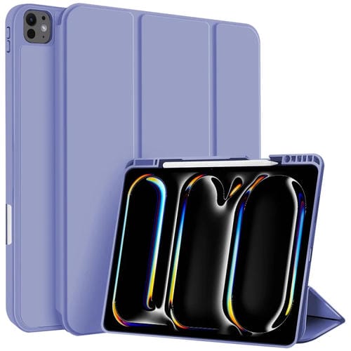 Funda de Cuero Inteligente TPU 3 Pliegues con Ranura Bolígrafo para iPad Pro 11 (2024) (Morado Lavanda)