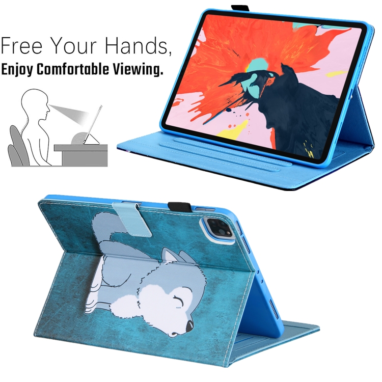 Funda Cuero para iPad Pro 11 (2024) Lobo Lindo Dibujo a Color