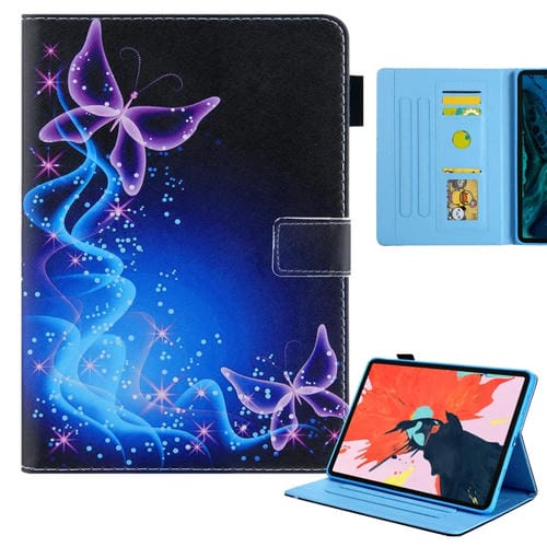 Funda de Cuero para iPad Pro 11 (2024) con Dibujo a Color Mariposas Moradas Dobles