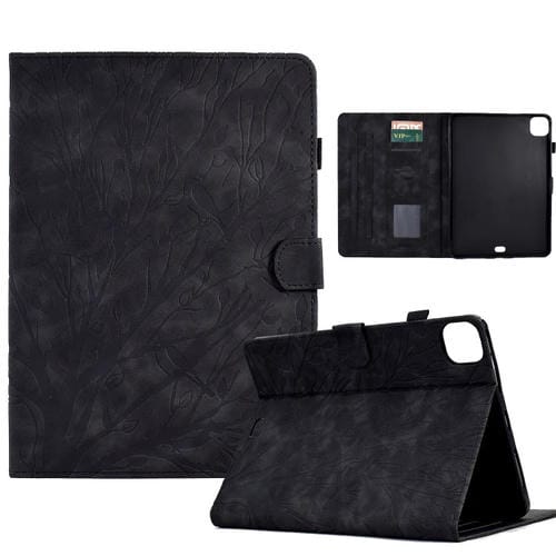 Funda Inteligente de Cuero con Relieve Fortune Tree para iPad Pro 11 (2024) (Negra)