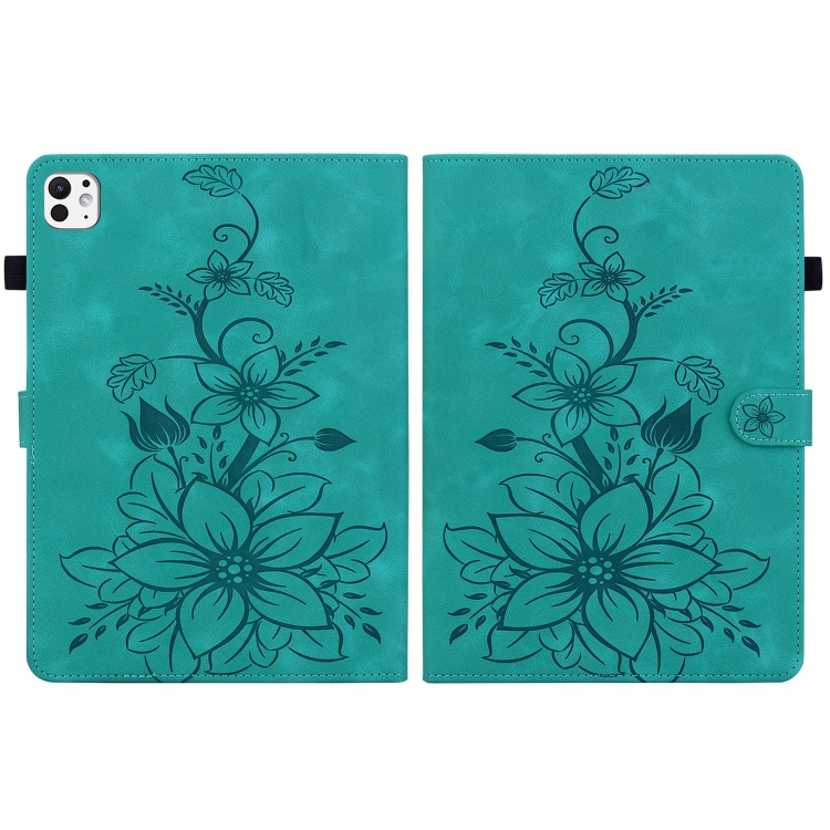 Funda Inteligente de Cuero con Relieve Lily para iPad Pro 11 (2024) (Verde)