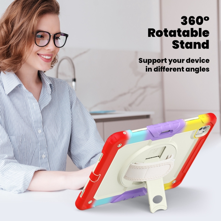 6. Correa de hombro desmontable: La correa de mano ajustable proporciona un agarre fácil y cómodo, una característica imprescindible cuando presenta su tableta a otras personas.La correa para el hombro ajustable y desmontable puede ayudarlo a transportar su tableta de manera más segura mientras camina, viaja y realiza otras actividades al aire libre.Esto también se puede utilizar para asegurar su tableta al asiento del automóvil.