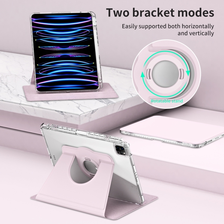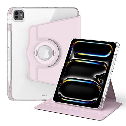 Funda para Tableta iPad Pro 13 2024 Cuero Acrílico Transparente Desmontable Rotación 360 (Rosa)