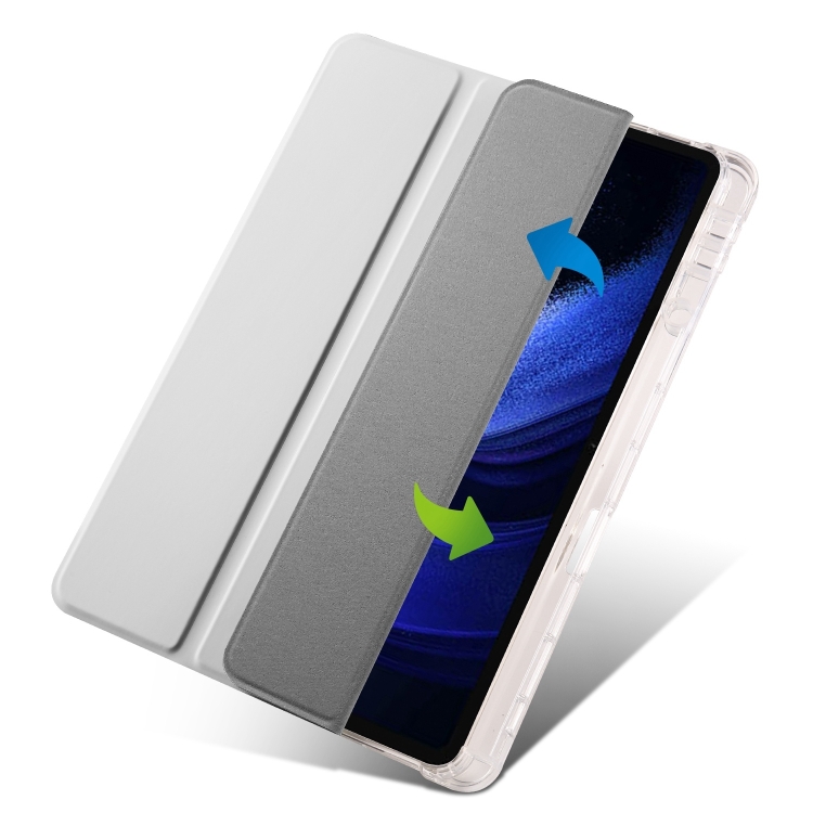 Funda para Tableta iPad Pro 13 2024 Cuero Inteligente TPU Transparente 3 Pliegues Ranura Bolígrafo (Gris Espacial)