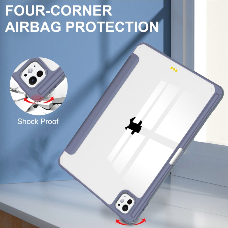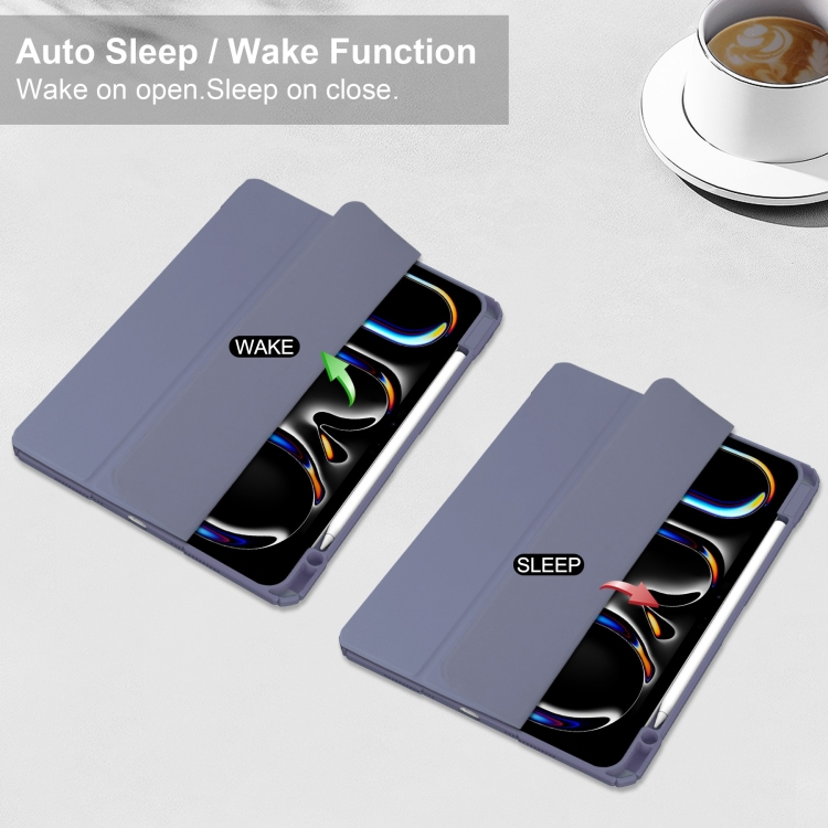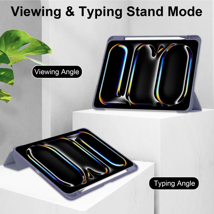 Funda para Tableta iPad Pro 13 (2024) Cuero Inteligente TPU Transparente 3 Pliegues (Lavanda)